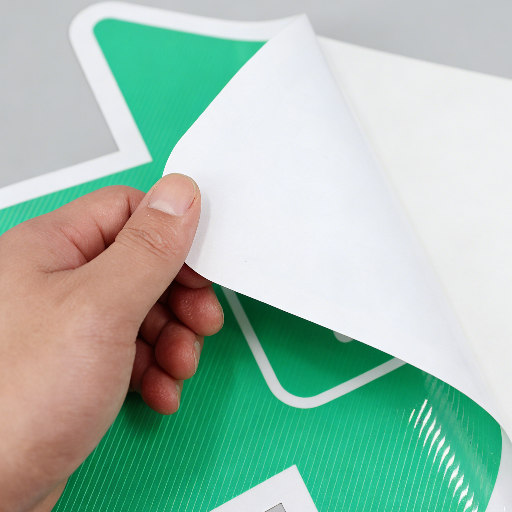 • Full‑color digital printing – High‑resolution CMYK printing up to 1440 DPI. Any design, any shape, including custom die‑cut logos, arrows, circles, and ovals.